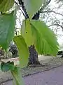 The tree was said to have ovate leaves, rounded or subcordate and not usually strongly oblique at the base.[4] Host said the leaf was biserrate. The catalogue of the Späth nursery, Berlin, describes 'Tiliifolia' [:'Tiliaefolia'] as having smooth shiny dark green leaves.[2][3]