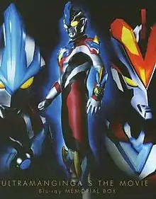 ![]() Blu-Ray DVD cover, featuring Ultraman Ginga (left), Ultraman Victory (right) and Ultraman Ginga Victory (middle). | |