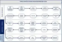 Ultrapure water validation must utilize a risk-based lifecycle approach.[14][15][16][17] This approach consists of three stages – design and development, qualification, and continued verification. One should utilize current regulatory guidance to comply with regulatory expectations. Typical guidance documents to consult at the time of writing are: FDA Guide to Inspections of High Purity Water Systems, High Purity Water Systems (7/93),[18] the EMEA CPMP/CVMP Note for Guidance on Quality of Water for Pharmaceutical Use (London, 2002),[19] and USP Monograph <1231> Water For Pharmaceutical Purposes.[20] However, other jurisdictions' documents may exist, and it is a responsibility of practitioners validating water systems to consult those. Currently, the World Health Organization (WHO) [21] as well as the Pharmaceutical Inspection Co-operation Scheme (PIC/S) [22] developed technical documents which outline validation requirements and strategies for water systems.