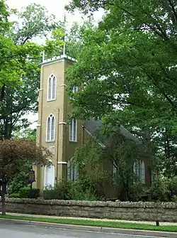 In 1842 the building was extensively rebuilt as a Gothic style Anglican church with a three-story entrance tower added to the front, a chancel added to the rear and the log walls of the meetinghouse incorporated into the main sanctuary. A rough mixture of plaster and clay stucco covers the church giving it its common name of the "Old Mud Church."[3]