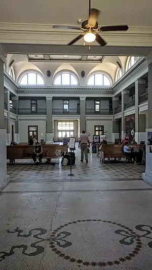 ![]() El Paso Union Depot interior view, showing the classic tile floor and large waiting room | ||||||||||||||||||||||||||||