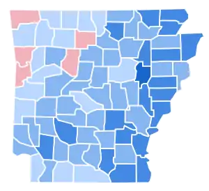 After the 1996 election, Arkansas would trend reliably Republican.[2] As of the 2020 presidential election, this is the last election in which Baxter County, Carroll County, Newton County, Boone County, and Polk County voted for a Democratic presidential candidate.[3]