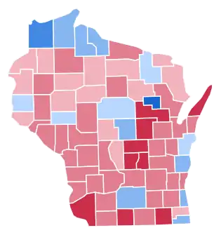 Politics in Wisconsin since the Populist movement had been dominated by the Republican Party,[1] as the upper classes, along with the majority of workers who followed them, fled from William Jennings Bryan’s agrarian and free silver sympathies.[2] Competition between the “League” under Robert M. La Follette, and the conservative “Regular” faction[3] would develop into the Wisconsin Progressive Party in the late 1930s, which was opposed to the conservative German Democrats and to the national Republican Party, and allied with Franklin D. Roosevelt at the federal level. During the two wartime elections, the formerly Democratic German counties in the east of the state – which had been powerfully opposed to the Civil War because they saw it as a “Yankee” war and opposed the military draft instituted during it[4] – viewed Communism as a much greater threat to America than Nazism and consequently opposed President Roosevelt's war effort.[5] Consequently, these historically Democratic counties became virtually the most Republican in the entire state, and became a major support base for populist conservative Senator Joe McCarthy, who became notorious for his investigations into Communists inside the American government.