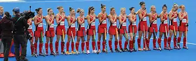 The United States women's national field hockey team,[2][3] coached by Anthony Farry,[4] since 2021 made its first international appearance in 1920 when a touring team visited England, coached by Constance M.K. Applebee. The team made several international appearances in the early 20th century, leading to the United States hosting the eighth International Federation of Women's Hockey Associations Tournament in 1963. Once the IFWHA merged with its counterpart on the men's side, the United States' first appearance at an FIH-sanctioned tournament was the 1983 Women's Hockey World Cup in Kuala Lumpur, Malaysia, where the Americans ended up in sixth place. They have won bronze at the Los Angeles 1984 Summer Olympics and bronze at the 1994 World Cup.[5][6]