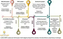 Since 2012, the business incubator has supported innovative projects whose participants have won the James McGuire Entrepreneurship Contest, which is an international-level competition open to all institutions of the Laureate University Network, and it is intended to support students to realize their business projects. Some of the projects that have won this contest are shown in the following illustration.[8]