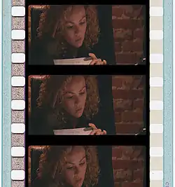 In addition to using the full film area, using three perforations per frame as opposed to four equates to using 25% less film for the same shooting time. With the traditional four perforations per frame, 35 mm film (at 24 frames per second) runs at 90 feet per minute (4 minutes 26 seconds per 400 feet of film), three perforations per frame runs at 67.5 feet per minute (5 minutes 56 seconds per 400 feet of film).[9] This would mean each magazine of film would have 33% more shooting time and a production that shot the same overall length of time as a four-perforation film would use 25% less film.