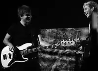 ![]() Josh Devine, the drummer on tour ![]() Sandy Beales (left), the bassist on tour