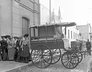 ![]() Ladies commission of the Uruguayan Red Cross near a horsedrawn ambulance in 1897. | |
