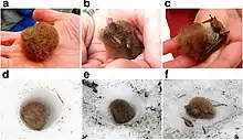 In the spring and autumn, it primarily roosts in clumps of dead leaves, but it also utilizes tree cavities and peeling tree bark.[4] Trees used for roosting include Litsea acuminata (a laurel species), Neolitsea sericea, Camellia sasanqua, Ardisia sieboldii, Cinnamomum camphora, and Ficus superba. Females switch roosts frequently, moving to a new roost every day in one study. It is colonial, with females forming maternity colonies.[6] These colonies last from June to August; the rest of the year, each sex is solitary.[7] These colonies consist of 2–22 individuals. The frequent roost-switching and variable colony sizes exhibited in maternity colonies suggests a fission-fusion social structure.[6] It is the only known bat that hibernates in snow. In the winter, it has been found roosting within cylindrical or conical holes in snowbanks. It is hypothesized that the bats excavate these cavities themselves. Hibernating within the snow may protect it from predators and prevent water loss; the snow holes likely have a stable thermal environment, as well. The only other mammal species known to hibernate within snow is the polar bear.[4]