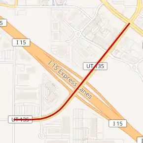 State Route 135 (SR-135) is a short divided state highway in northern Utah County, Utah, United States. The route spans east–west (or more accurately, northeast–southwest) for 0.726 miles (1.168 km) to connect the far northeastern part of Lindon and Interstate 15 (I-15) with SR-129 (North County Boulevard) in the southeastern part of Pleasant Grove. The majority of the route runs along Pleasant Grove Boulevard.[2][1]