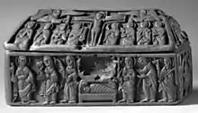 The Uttoxeter Casket, also known as Philip Nelson's Casket, is an Anglo Saxon reliquary from Uttoxeter, Staffordshire in the United Kingdom. As of 2017, it is held at the Cleveland Museum of Art in Ohio, USA. House-shaped and carved from a single piece of boxwood, it remains the only known surviving wood carving with such an elaborate iconographic programme from this period of British history.
