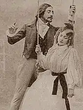 The stars of the Théâtre des Bouffes Parisiens company, Mariette Sully and Jean Périer, were well known and popular figures with Paris audiences, and among the supporting players were singers familiar from Les p'tites Michu, including Maurice Lamy, Victor Regnard and Brunais.[5][6] Véronique was first performed at the Bouffes Parisiens on 10 December 1898.[5] It ran until April 1899, a total of 175 performances.[7]