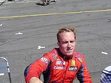 ![]() Víctor García giving autographs at the 2010 Brno World Series by Renault | |