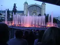 Křižík's fountain or Křižík's light fountain is an illuminated and musical fountain, which is used for cultural events. The fountain was built by František Křižík in 1891 on the occasion of the World Exhibition and became unique European attraction. The Fountain was rebuilt in the 1920s by architect Z.Stašek. The bottom of the fountain plate is equipped with 1300 multicolored reflectors and water circuits composed of more than 2 kilometers of pipes with almost 3000 nozzles. Now it is amplified by the classical and pop music and other art projects.[3] Since autumn 2017, the operation of the fountain is interrupted and the reconstruction will last for several years.
