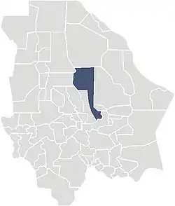 Under the 2005 districting scheme, Chihuahua's Eighth District comprises the eastern and northern portions of Chihuahua Municipality, including approximately one-half of the urban area of the city of Chihuahua.[1] The other half of the city, and the rest of the municipality, is covered by the Sixth District.