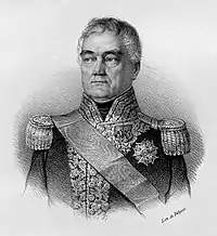 The VI Corps was reconstituted for the invasion of Russia and placed under the command of General Laurent de Gouvion Saint-Cyr. The corps was composed entirely of Bavarian soldiers.[12] At the First Battle of Polotsk on 16 to 18 August 1812, the Bavarians and the French II Corps together suffered 6,000 casualties, including Bavarian Generals Bernhard Erasmus von Deroy and Siebein killed, and Vincenti and Raglowitsch wounded.[13] Saint-Cyr won his marshal's baton for this costly victory.[14] The corps fought in the Second Battle of Polotsk on 18 to 20 October. This time, the combined Bavarian and French forces sustained 8,000 to 9,000 casualties before withdrawing to the southwest.[15] A body of 2,100 surviving Bavarians was captured at Thorn on 16 April 1813 after a two-month siege.[16]