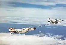 Redesignated Fixed Wing Marine Fighter (All Weather) Squadron VMF(AW)-235 deployed to Vietnam on February 1, 1966 flying the F-8E Crusader. Between February 2 and November 15, 1966 the “Death Angels” flew over 6,000 combat sorties in support of over 22 major operations.[2] They returned to Vietnam on February 15, 1967 this time for over a year until May 11, 1968. They were the last active duty Crusader squadron. Upon leaving Vietnam, the squadron moved to Marine Corps Air Station Kaneohe Bay. On September 6, 1968 they were redesignated Fixed Wing Marine Fighter Attack Squadron VMFA-235 and equipped with the F-4 Phantom.