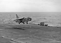 In late 1954 VX-3 carrier-qualified the F9F-8 Cougar aboard the USS Midway.[3]: 135