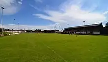 At the start of the 2016–17 season the ground was renamed Volair Park following on from the signing of a 3-year grounds rights deal with local leisure services provider Volair.[1] The club were granted a 99-year lease from Knowsley council in 2019 which ensures the club's future for decades to come.[2] In November 2019 the club signed a stadium rights deal with IP Truck Parts, as part of the deal the stadium for the 2019 season will be known as the IP Truck Parts Stadium. Located about just over half a mile from Prescot railway station, the capacity is around 3,200.