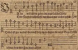 | .jpg.webp) The Sterbelied (hymn for the dying) in a Lutheran hymnal, 1614 | |