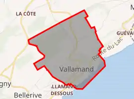 Vallamand has an area, as of 2009, of 2.34 square kilometers (0.90 sq mi). Of this area, 1.34 km2 (0.52 sq mi) or 57.3% is used for agricultural purposes, while 0.52 km2 (0.20 sq mi) or 22.2% is forested. Of the rest of the land, 0.46 km2 (0.18 sq mi) or 19.7% is settled (buildings or roads) and 0.03 km2 (7.4 acres) or 1.3% is unproductive land.[3]