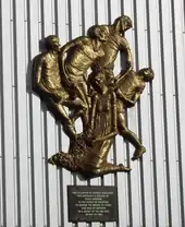 More than £3.5 million (£10.8 million today) was raised for victims of the fire and their families through the Bradford Disaster Appeal Fund.[26] Memorials have been erected at the ground and at Bradford City Hall, the latter of which was provided by Bradford's twin town of Hamm, in Germany.[62] The disaster is also marked by an annual remembrance ceremony on 11 May at Bradford City Hall,[65] and an annual Easter-weekend youth tournament, contested between Bradford, Lincoln and other teams from across Europe.[66]