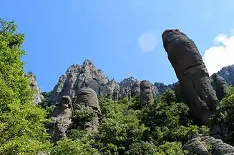 The Valley of Ghosts (Russian: Долина привидений, Ukrainian: Долина привидів, Crimean Tatar: Hayalet vadiysi) is a valley located in the Crimea,[1] made up of naturally shaped rocks on the Southern Demerdzhi Mountain, located near Alushta city.[2]