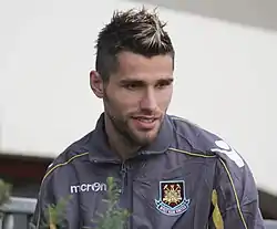 On 23 July 2008, West Ham United signed Behrami from Lazio, with the player signing a five-year contract for a fee of £5 million.[9] Behrami made his debut for West Ham in the 2–1 home win over Wigan Athletic on 16 August 2008.[10] His versatility would see him become a vital part of West Ham's midfield, having begun the season as a stand in for captain Lucas Neill at right back. He scored his first goal for West Ham in the 1–0 away win against Sunderland on 23 November 2008.[11] During the home win over Manchester City on 1 March 2009,[12] he suffered an anterior cruciate ligament injury in his left knee[13] that required oxygen to be administered on the field during a six-minute break in play. His knee and ankle twisted badly when his studs caught in the turf resulting in a premature end to his 2008–09 season.