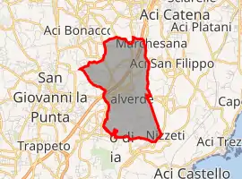 Valverde borders the following municipalities: Aci Bonaccorsi, Aci Castello, Aci Catena, Aci Sant'Antonio, San Giovanni la Punta, San Gregorio di Catania.