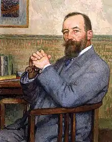 Théo van Rysselberghe was a prominent painter, who played a pivotal role in the European art scene at the turn of the twentieth century. After him, the most prominent member of the family is perhaps François.[2] He was a scientist and inventor, a forerunner and inventor of numerous devices in the fields of meteorology and telephony. Octave and Charles were both architects, whereas Julien Marie was an engineer of bridges and roads, as well as a professor of engineering at Ghent University.[4] Jean-Baptist and Mélanie had also a daughter, Sylvia-Maria, who married a Chilean engineer.[4]
