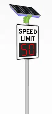 Speed limits on road traffic, as used in most countries, set the legal maximum speed at which vehicles may travel on a given stretch of road.[2] Speed limits are generally indicated on a traffic sign reflecting the maximum permitted speed - expressed as kilometres per hour (km/h) and/or miles per hour (mph). Speed limits are commonly set by the legislative bodies of national or provincial governments and enforced by national or regional police and judicial authorities. Speed limits may also be variable, or in some places nonexistent, such as on most of the Autobahnen in Germany.[3]