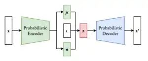 In machine learning, a variational autoencoder,[1] also known as a VAE, is the artificial neural network architecture introduced by Diederik P. Kingma and Max Welling, belonging to the families of probabilistic graphical models and variational Bayesian methods.
