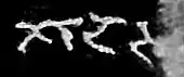 According to Richard Salomon, the inscription is from the time of the Indo-Scythian Northern Satrap Sodasa, or early years of the 1st-century CE.[1] The name of the ruler appears with his full title (Middle Brahmi script: ![]()