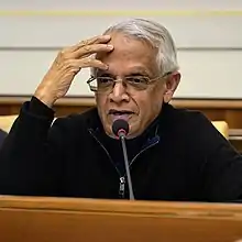 Ramanathan is an ISI highly cited researcher.[23] He is a fellow of the American Association for the Advancement of Science, American Meteorological Society and American Geophysical Union. He became a member of the American Academy of Arts and Sciences in 1995.[24] In 1995, the Royal Netherlands Academy of Arts and Sciences awarded him the Buys Ballot Medal.[25] In 2002, he was awarded the Carl-Gustaf Rossby Research Medal, "... for fundamental insights into the radiative roles of clouds, aerosols and key gases in the Earth's climate system." He was elected a member of the US National Academy of Sciences in 2002 "... for fundamental contributions to our modern understanding of global climate change and human impacts on climate and environment",[26] an Academician of the Pontifical Academy of Sciences in 2004, a member the American Philosophical Society in 2006,[27] and a member of the Royal Swedish Academy of Sciences in 2008.[28] Also, Veerabhadran Ramanathan has been bestowed with the BBVA Foundation Frontiers of Knowledge Award 2015 in the Climate Change category for discovering that human-produced gases and pollutants other than CO2 have a huge power to alter the Earth's climate, and that by acting on them it is possible to make a short-term dent on the rate of global warming. He received the prestigious Tang Prize for Sustainable Development in 2018. He was awarded the 90th annual Mendel Medal by Villanova University in 2018 for his work on climate change.[29]