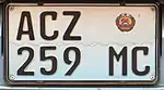 Mozambique kept the same license plate design used during the colonial period until 2011. These are the same as Portuguese plates before 1992 but they have a letter 'M' as the first character.[1] The two letters after the 'M' denote the district where the car was registered.