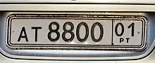 Vehicle registration plate of Tajikistan (previous format from 1996)