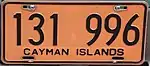 The Cayman Islands requires its residents to register their motor vehicles and display vehicle registration plates.[1] Vehicles plates usually have six numbers on them, separated into groups of three. Most plates have 'Cayman Islands' written beneath the numbers and are North American standard 6 × 12 inches (152 × 300 mm).[2]