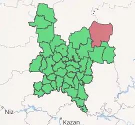 Verkhnekamsky District (Russian: Верхнека́мский райо́н) is an administrative[1] and municipal[6] district (raion), one of the thirty-nine in Kirov Oblast, Russia. It is located in the northeast of the oblast. The area of the district is 10,297 square kilometers (3,976 sq mi).[2] Its administrative center is the town of Kirs.[1] Population: 32,669 (2010 Census);[3] 39,643 (2002 Census);[8] 54,171 (1989 Census).[9] The population of Kirs accounts for 31.9% of the district's total population.[3]