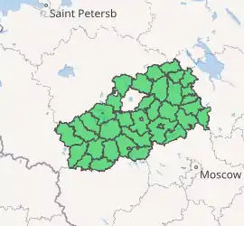 Vesyegonsky District (Russian: Весьего́нский райо́н) is an administrative[1] and municipal[5] district (raion), one of the thirty-six in Tver Oblast, Russia. It is located in the northeast of the oblast and borders with Cherepovetsky District of Vologda Oblast in the northeast, Breytovsky District of Yaroslavl Oblast in the southeast, Krasnokholmsky District in the south, Molokovsky District in the southwest, Sandovsky District in the west, and with Ustyuzhensky District of Vologda Oblast in the northwest. The area of the district is 2,047 square kilometers (790 sq mi).[2] Its administrative center is the town of Vesyegonsk.[1] Population: 13,481 (2010 Census);[3] 16,517 (2002 Census);[7] 19,879 (1989 Census).[8] The population of Vesyegonsk accounts for 54.4% of the district's total population.[3]
