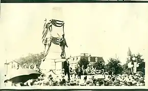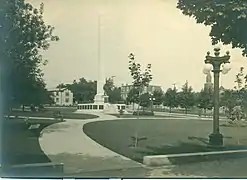 In 1872 David E. Park, a Pittsburgh businessman and financier, made his first philanthropic gesture to Ebensburg. This was in the form of a town park which initially went by the same name, "Town Park." This was Ebensburg's first formal planned space. Later, Park allocated funds for the park and its monument in the 1910s in response to the community's desire for a Civil War memorial.[4] In 1912, a panel of fourteen distinguished Civil War veterans from across Cambria County met in 1912 to make plans for the memorial's design. After meeting with the project's financial backer, David E. Park, the panel chose the obelisk design and placement of 3,500 names of Civil War veterans on bronze tablets at the monument's base.