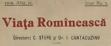 Viața Românească[lower-alpha 1] (Romanian: [ˈvjat͡sa romɨˈne̯askə], "The Romanian Life") is a monthly literary magazine published in Romania. Formerly the platform of the left-wing traditionalist trend known as poporanism, it is now one of the Writers' Union of Romania's main venues.