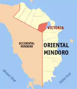 ![]() Map of Oriental Mindoro with Victoria highlighted | |