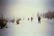 The word vignette means "little vine" in French, and was derived from Old French vigne, meaning “vineyard”.[1] In English, the word was first documented in 1751, and was given the definition “decorative design".[1] This definition refers to decorative artwork of vine-leaves and tendrils used to embellish title pages and the commencement of chapters.[3] In 1853, the word was used to describe a popular 19th century photographic style, where portraits had blurred edges.[1] The definition of a vignette referring to a “literary sketch” was first recorded in 1880.[1] The idea of the "literary sketch" was derived from the sketch in visual arts - a rough or unfinished drawing or painting, showing the main elements of an artwork.[5] This reflects the characteristics of a vignette; brief and spontaneous, with a sense of immediacy.[6]