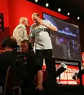 Van der Voort beat Mark Hylton 3–2 in the first round of the 2012 World Championship in a thrilling match.[3] His second round tie also went to a deciding set against Andy Hamilton, but this time the Dutchman was on the wrong end and exited the tournament by 3 sets to 4.[4] He then represented the Netherlands in the 2012 PDC World Cup of Darts to try to defend the title won by Raymond van Barneveld and Co Stompé in 2010. Van der Voort and Van Barneveld enjoyed comfortable victories over Austria and Northern Ireland to set up a semi-final clash with the Australian pair of Paul Nicholson and Simon Whitlock. Van Barneveld beat Nicholson 4–0 in their singles match, but this was the only point the Dutch won as they relinquished their crown in a 1–5 defeat.[5] Van der Voort lost 7–9 in the last 32 of the UK Open to Kim Huybrechts,[6] and at the World Matchplay he was defeated by Ian White 5–10 in the first round.[7] He later revealed he had passed out before the match and returned home to Holland to undergo tests which revealed him to be lactose intolerant. Doctors advised him to miss the rest of 2012, however Van der Voort defied them to beat William O'Connor in the first round of the World Grand Prix in October.[8] He then lost to Brendan Dolan 1–3 in sets in the last 16.[9] After all 33 ProTour events of 2012 had been played, Van der Voort was 24th on the Order of Merit, inside the top 32 who qualified for the Players Championship Finals.[10] He was beaten by Kim Huybrechts 3–6 in the first round.[11]
