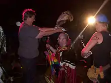 The entertainment on New Year's Eve often consists of a series of shows that continue up until prize giving. These shows are often drag queen/king performances, and some of them may have adult content. Prizes are awarded for Miss/Ms "Hospitality", and to recognise the 'camp' campsites, Best Use of Technology, Best Lighting, and Best Decorations.[9] The most coveted of the campsite awards is the Best Campsite award. This is usually followed by the coronation of the new Queen, slightly before midnight, and followed by a dance party that lasts until dawn.[12]