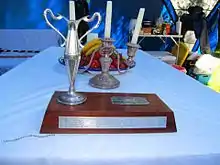 [1] Ian's name was not initially engraved on the trophy, causing confusion among following queens, and it was not until after 2006 that his name was remembered. The queens appointed on either side of him were unavailable for consultation to confirm this earlier.