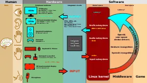 Special input devices are required for interaction with the virtual world. These include the 3D mouse, the wired glove, motion controllers, and optical tracking sensors. Controllers typically use optical tracking systems (primarily infrared cameras) for location and navigation, so that the user can move freely without wiring. Some input devices provide the user with force feedback to the hands or other parts of the body, so that the human being can orientate himself in the three-dimensional world through haptics and sensor technology as a further sensory sensation and carry out realistic simulations. This allows for the viewer to have a sense of direction in the artificial landscape. Additional haptic feedback can be obtained from omnidirectional treadmills (with which walking in virtual space is controlled by real walking movements) and vibration gloves and suits.