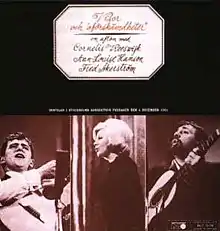 Visor och oförskämdheter (English: Songs and impertinencies) is a live album, featuring Swedish folk musicians Cornelis Vreeswijk, Fred Åkerström and Ann-Louise Hanson. It was recorded live in Stockholm's Concert hall in December 1964.[1] Prior to this album, Vreeswijk was forced to decide whether or not to continue his studies or pursue music. He decided to stop studying and embarked on a tour with Fred Åkerström and Ann-Louise Hanson, during which this album was recorded.[2]