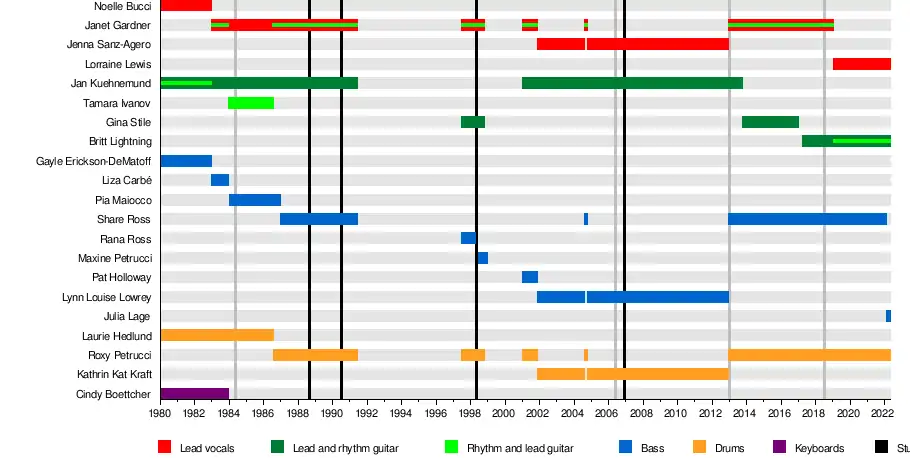 | Members | Roxy Petrucci Britt Lightning Lorraine Lewis Julia Lage |