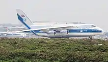 Volga-Dnepr Airlines, LLC (Russian: ООО «Авиакомпания «Волга-Днепр») is an airline based in Ulyanovsk, Russia. It specializes in providing air charter services by operating a unique fleet of twelve Antonov An-124 (largest production cargo aircraft), five Boeing 747-8F and five IL-76TD-90VD (Stage IV) ramp all cargo aircraft certified for global operations. It is a world leader in the global market for the movement of oversize, unique and heavy air cargo.[1] Volga-Dnepr Airlines serves governmental and commercial organizations, including businesses in the oil and gas, energy, aerospace, agriculture and telecommunications industries as well as the humanitarian and emergency services sectors. Its main base is Ulyanovsk Vostochny Airport (ULY), Ulyanovsk and it has a hub at Krasnoyarsk Yemelyanovo Airport (KJA), Krasnoyarsk. The airline also operates an operations base in Houston, Texas, USA at George Bush Intercontinental Airport.[2]